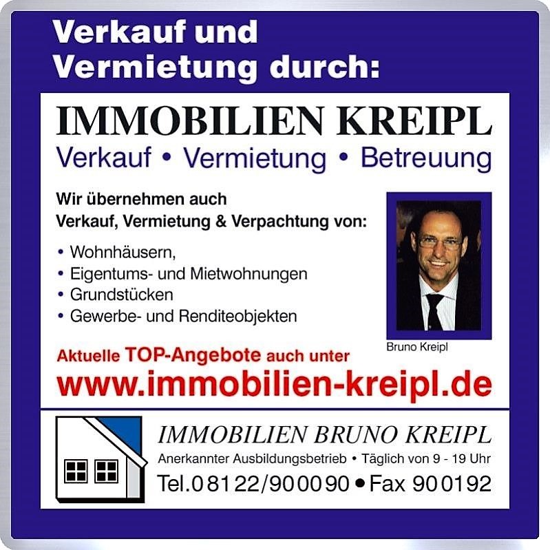 Nach Ihrer E-Mail-Anfrage wird Ihnen ein BEWERBUNGSBOGEN mit Begleittext für Mietobjekte zugesendet, ebenso kann es leider auch dazu kommen, dass Aufgrund der hohen Nachfrage eine Antwort oder die Versendung des Bewerbungsbogen nicht mehr möglich ist. Dafür möchte wir uns Entschuldigen. Da der Bewerbungsbogen zur Anfragenbearbeitung notwendig ist, bitten wir Sie deshalb, von telefonischen Anfragen u. persönlichen Besuchen abzusehen. Natürlich sind alle Angaben freiwillig. Vielen Dank für Ihr Verständnis. Die KREIPL-KELLNBERGER-IMMOBILIEN-GMBH sucht laufend Miet- und Verkaufsobjekte in jeder Größe für unsere vorgemerkten Kunden. Wir bieten kompetente Beratung, gepaart mit 38 -jähriger Erfahrung.