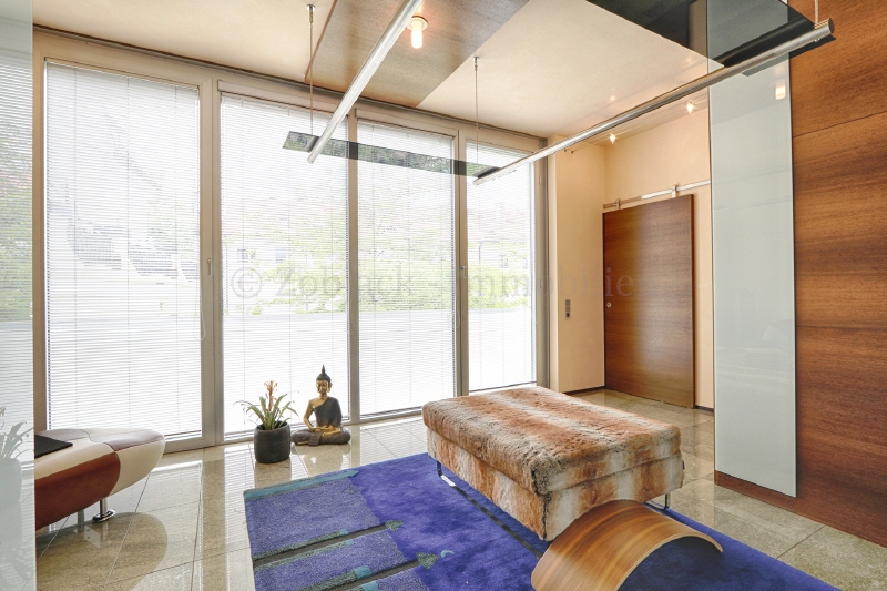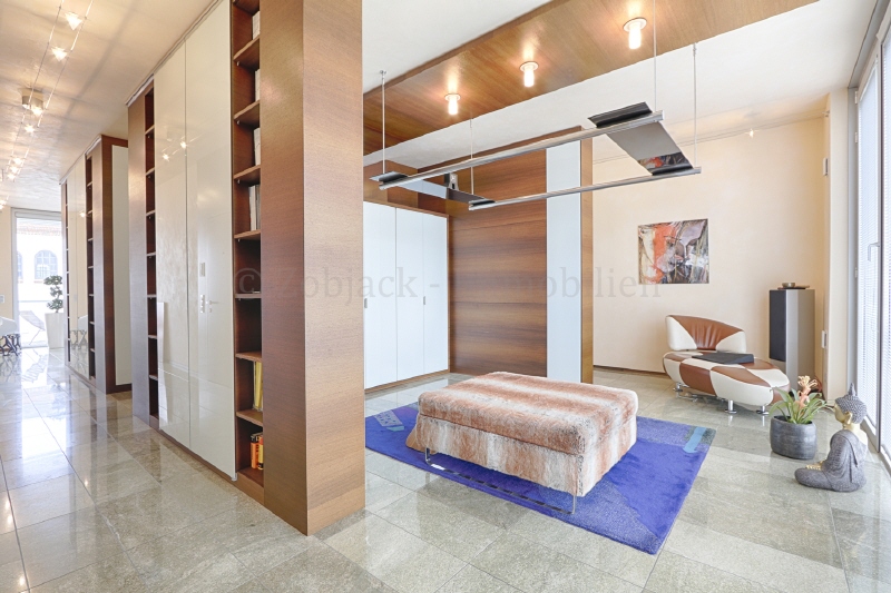 + komplette, maßgefertige Möblierung aus hochwertigem Edelholz & Glas
