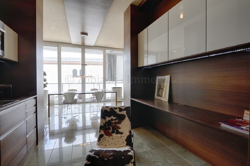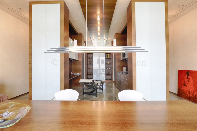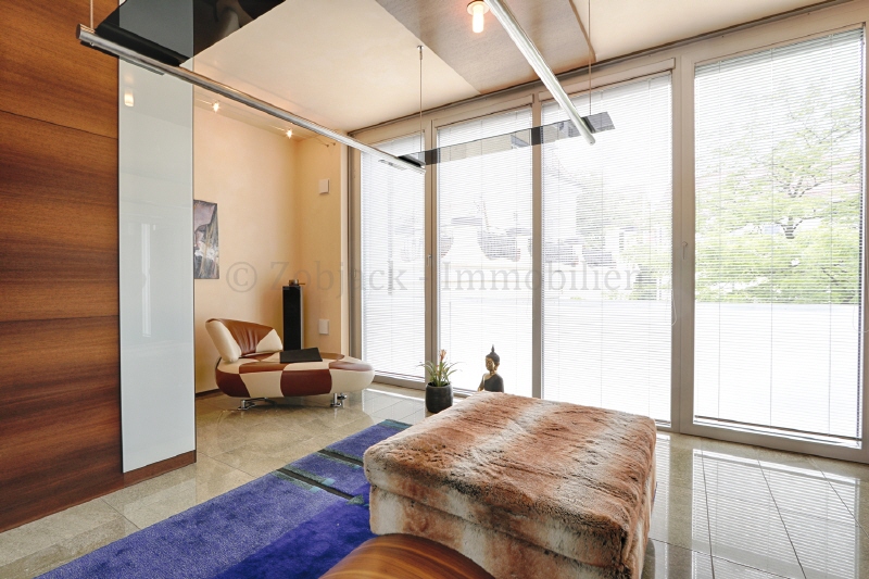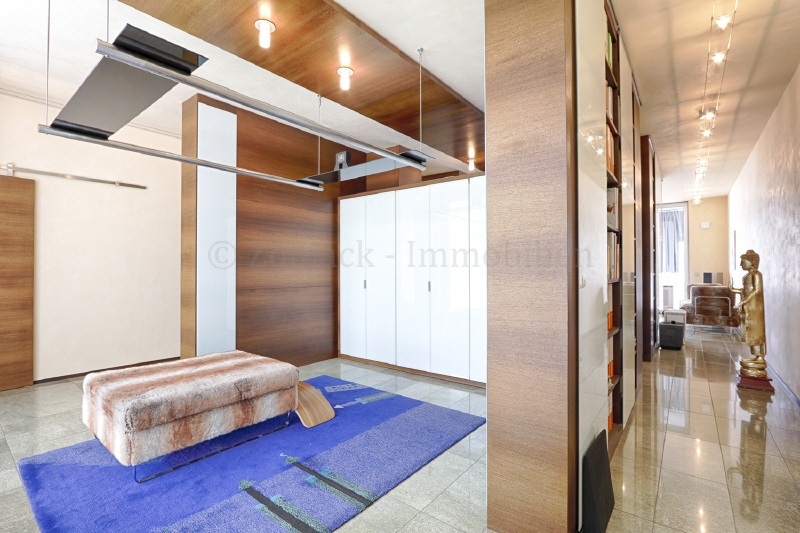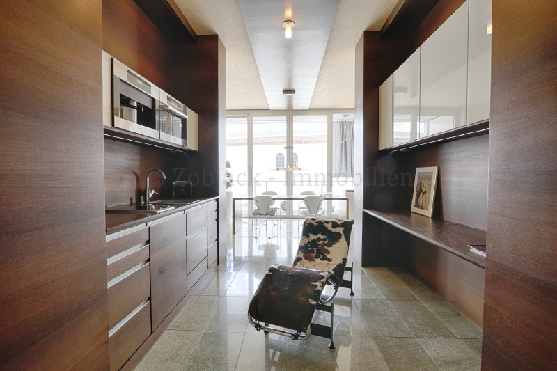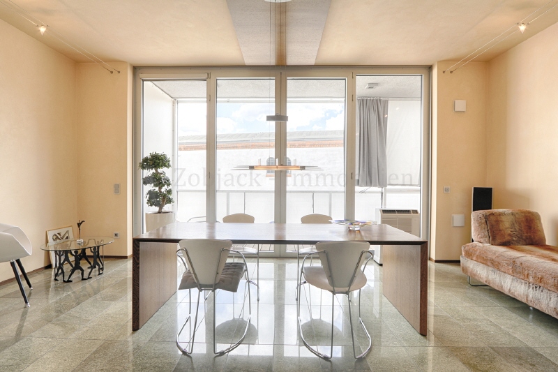 Diese exquisite Loftwohnung beeindruckt durch ihr einzigartiges Wohnkonzept in Verbindung mit einer eleganten Ausstattung. Die Wohnfläche von insgesamt ca. 89,5 m² erstreckt sich über einzelne Raumzonen mit hohen Decken (ca. 3 m) sowie einer sonnigen Loggia. Durch die deckenhohe Inneneinrichtung aus hochwertigem Edelholz und Glas wurde eine einzigartige Gliederung von Wohnbereichen mit einer offenen Atmosphäre geschaffen. In die individuell angefertigten Einbauelemente integriert sich ein moderner Küchenbereich mit Miele-Einbaugeräten und angrenzendem Essbereich, ein praktischer Home-Office-Arbeitsplatz mit High-Speed-Internet, ein Schlafbereich mit freischwebendem Bett sowie ein schier unerschöpflicher Stauraum. Besonderes Augenmerk wurde auf die Auswahl der hochwertigen Ausstattung und Materialien gelegt. So unterstreichen die modernen Natursteinböden mit behaglicher Fußbodenheizung, das stilvolle Lichtkonzept mit Designerlampen, die bodentiefen Fensterelemente mit elektrischen Markisen sowie ein elegantes Tageslichtbad mit hochwertiger Sanitärausstattung dieses unvergleichliche Wohlfühlambiente. Ein breiter Tiefgaragenstellplatz (20.000 EUR), den Sie bequem mit dem Lift erreichen können, sowie ein praktisches Kellerabteil (ca. 7 m²) gehören ebenfalls zu dieser Wohnung.