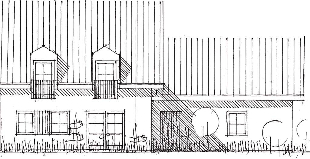 Es kann hier eine Doppelhaushälfte gebaut werden.