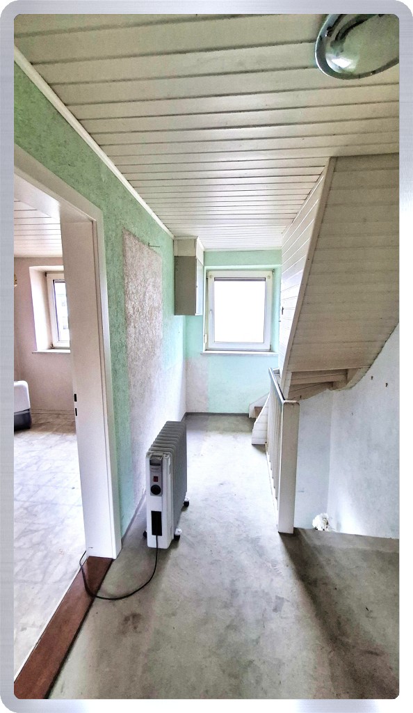 Im 1.Obergeschoss befinden sich vier Zimmer. Ein Schlafzimmer, teilt sich hier in zwei Räume, sowie der Zugang zu dem Dachspeicher.