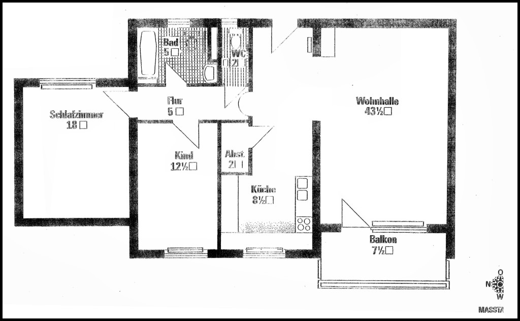 Der große Wohnbereich mit ist gut geschnitten und hat Zugang zu dem großen sonnigen Westbalkon mit Markise.